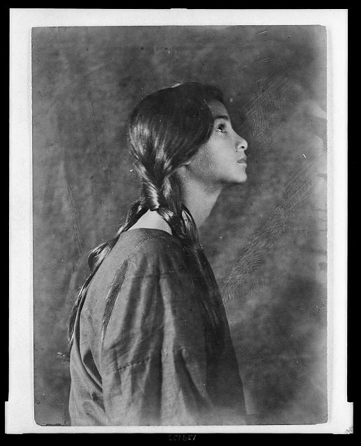 The next photograph was called A Dusky Madonna. This young woman was photographed by Martin P. Spencer in May of 1902, in Wenatchee, Washington. We know little about the subject, except that she is from the Northwest, probably the Plateau region. She may possibly have been Spokane.