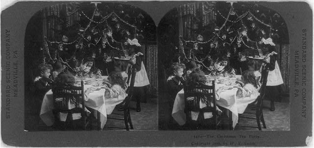 Here’s one more stereoscope image called The Christmas Tea Party, from 1906. Ah, the kids’ table…brings back happy memories!