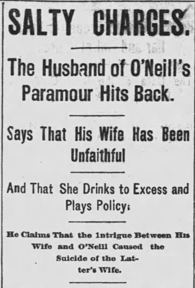 Meanwhile, the Smallenburgs were outraged by O’Neill’s accusations and his threat to sue them. “I would want nothing better,” said Mr. Smallenburg to a News reporter the next day. “The truth of the whole matter is that when Mrs. O’Neill needed money we gave it to her, supplied her with articles she badly needed, and took care of her when her husband paid absolutely no attention to her wants. He says in the News interview that I poisoned the mind of his wife by telling her of his wrong doings? We tried to conceal many things from her.” As to the furniture, Mrs. O’Neill insisted on mortgaging it to them and it would be auctioned off the following week. “The proceeds will not go into my pocket. I am entirely disinterested. I intend to buy a monument to erect over her grave. I have even told the lawyers to buy it and will not even touch the money.”