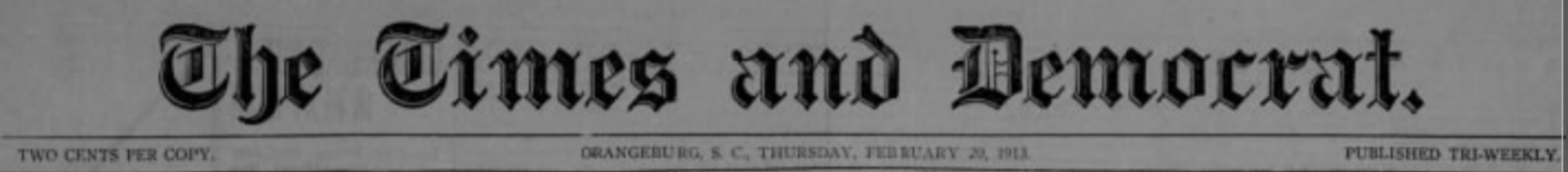 I wonder what happened to this couple. There was more to this story, of that I am confident. I couldn’t find a follow-up article, but I doubt Mr. J.A. Brown’s troubles were over. Even though his wife had abandoned him, it sounded like the property where they lived belonged to her. Moreover, the publicity this story received would have made his life very difficult. Besides Orangeburg, the story ran in Knoxville, Chattanooga, Atlanta, and Greenville (SC). In a very masculine society, as the south was in the 1910s, you can bet Mr. Brown was never allowed to put this incident entirely behind him.