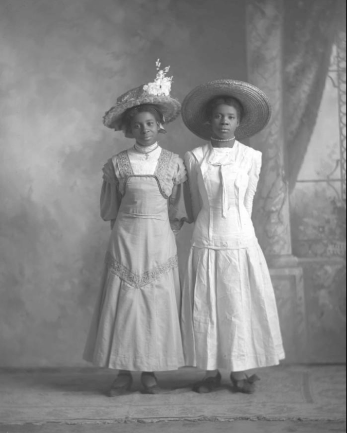 Twins Elsie (1889-1981) and Lela (1889-1962) Scott were two of seventeen children of Exodusters John and Julia Scott. The Scotts migrated from Louisiana to Indiana and then to Stafford County, Kansas. This photograph was taken at the W. R. Gray Studio in St. John, Kansas in 1910.