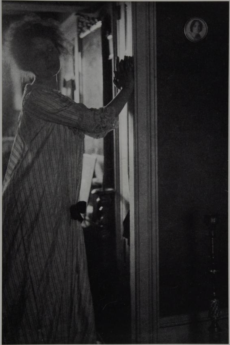 This unusual photograph was taken in 1899 by F. Holland Day. He called it Portrait Against the Light . I wasn’t able to find the name of the woman in the picture.