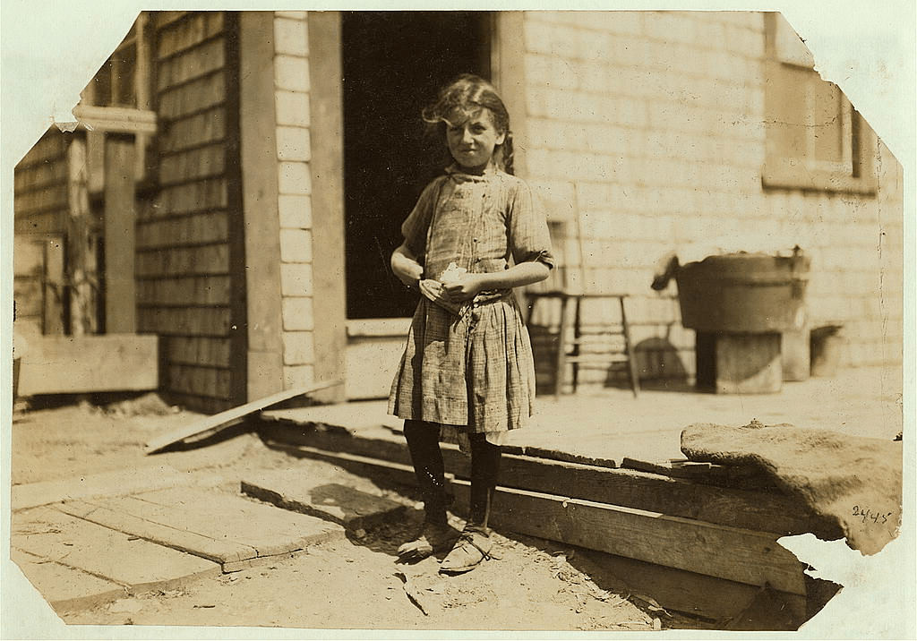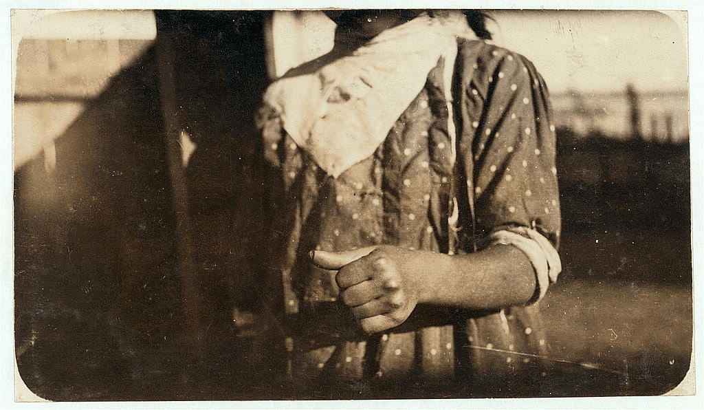 In August 1911, photographer Lewis Wickes Hines was indignantly photographing children who worked with dangerous equipment. One day, he was at a canning factory in Eastport, Maine when an 8-year-old Syrian girl named Phoebe Thomas began to scream. The end of her thumb was nearly severed by her machine.