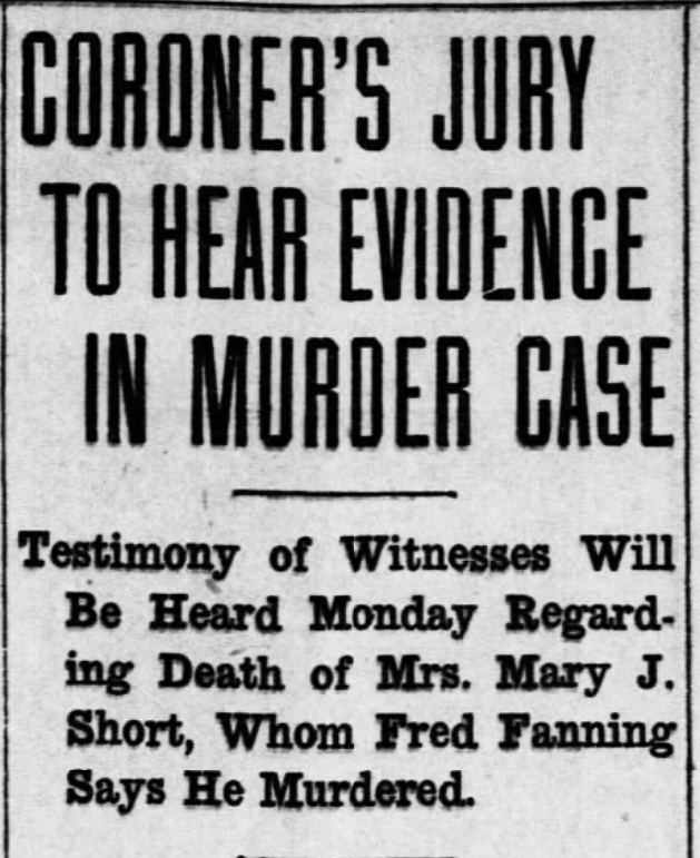 When the coroner’s jury convened, it became apparent at once that Fanning had not murdered Mrs. Short: