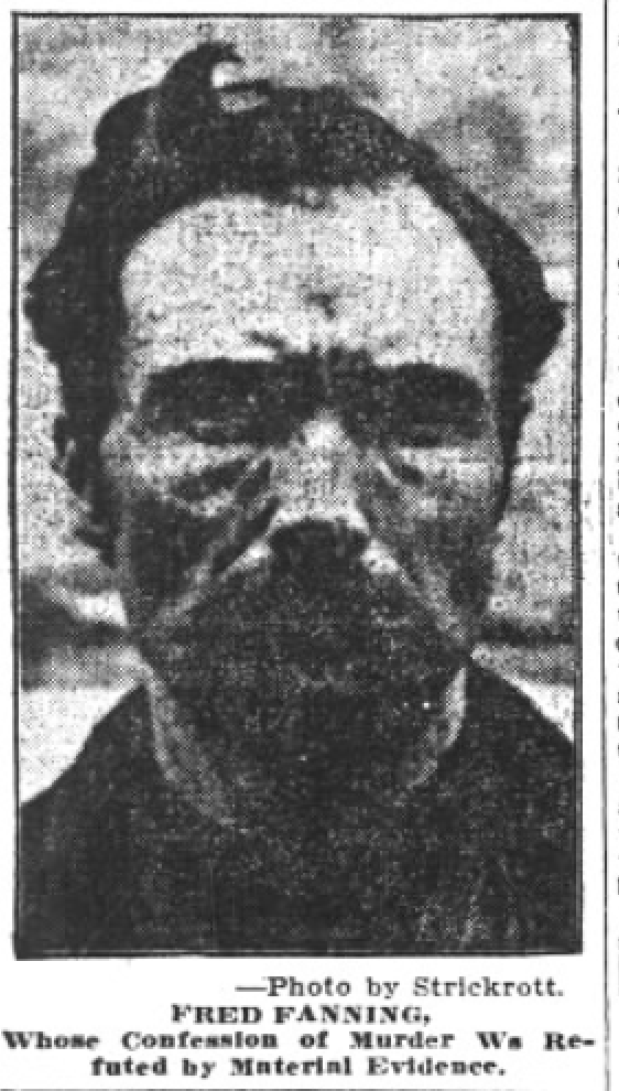 - Deputy Sheriff Judkins testified Fanning lied when he confessed to the murder. The sheriff said Mrs. Mather promised to forgive Fanning if he confessed and to “see him out of his trouble” by paying his way back to his home in Illinois. (This was long before Miranda rights!)
