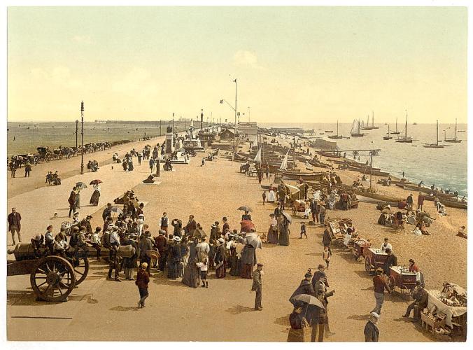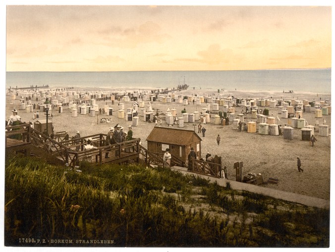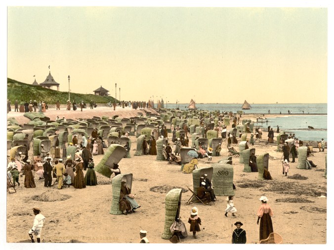 Between 1890 and 1900, a tremendous number of beautiful, crystal-clear photochrom prints were made of European beaches in Poland, Spain, France, Germany, Belgium, England, the Isle of Man, Holland, Wales, Scotland, West Prussia.