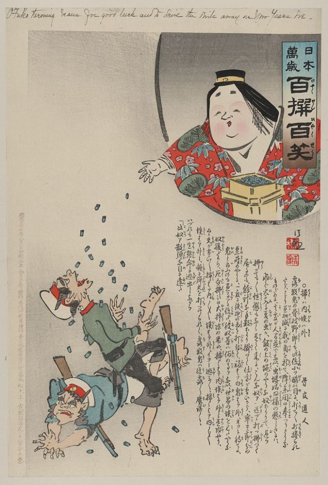 O’Fuko throwing beans for good luck and to drive the girls away on New Years Eve 1905