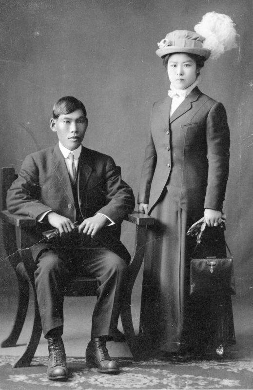 Wedding photo of Kurazo Ideta and Hatsu Shimasaki, taken in 1914.