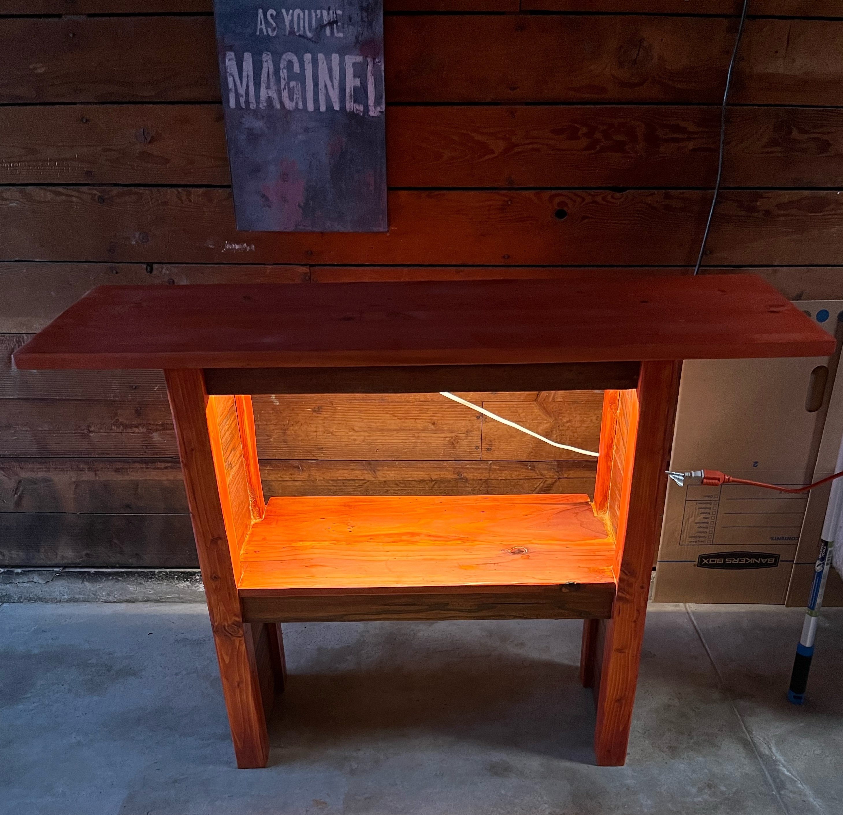Also, here are a couple of pictures of the potting bench I salvaged and stained. I learned how to use a sander and stain wood. It was really fun. I’m ridiculously proud of it!
