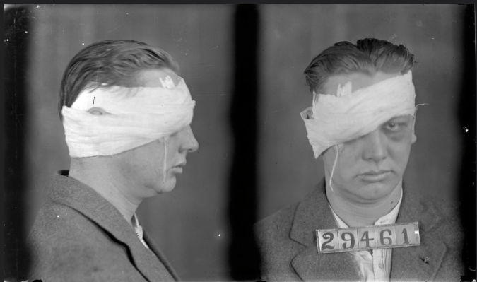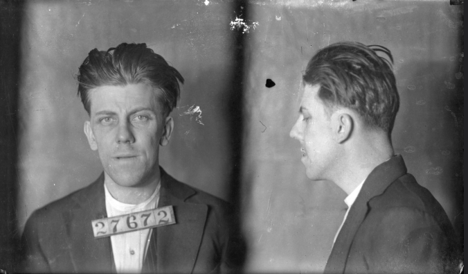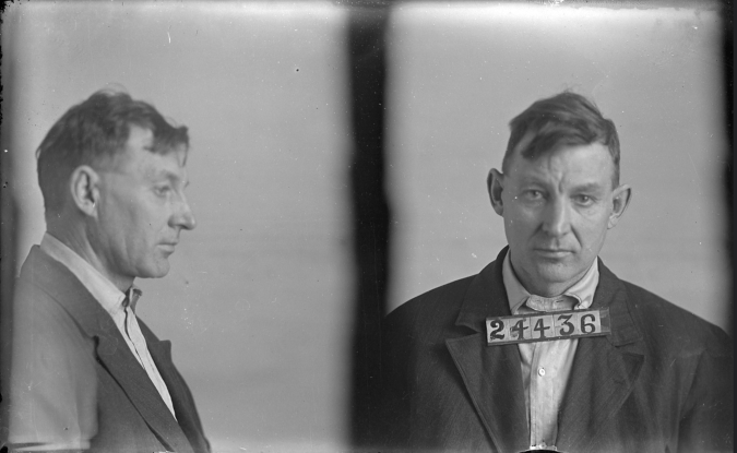 Collins was incarcerated for 18 years before being transferred to Fulton Asylum on January 17, 1942. Nine months later, the asylum returned Collins to prison, presumably he was well enough to go back. But after six months, the prison again sent him back to Fulton and he remained there until his death on October 25, 1946. You may have noticed Collins is wearing overalls in his mugshot. It seems unusual today but there were a surprising number of prisoners sporting overalls in vintage mugshots. A large percentage of the jobs for ordinary people in the early twentieth century were related to agriculture, especially from the middle of the country.