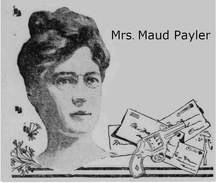 Many of the letters targeted Mrs. Maud Payler, age 26, as well. Mrs. Payler was the daughter of millionaire John Gibbs and the wife of a traveling auditor. I think it would be fair to call her a rather intense person, but read on and let me know if you agree with this characterization. “[Mrs. Payler]… goes armed with a revolver half-cocked in a holster,” the Evansville Press revealed.