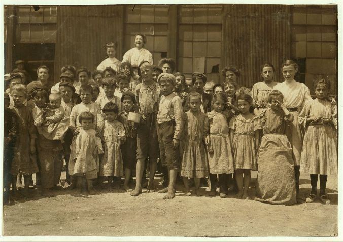 I happened upon some photographs in the Library of Congress by Lewis Wickes Hine. Hine traveled from New England to Appalachia to the South, documenting the working conditions at establishments that hired young children. You can see the poverty on the children and that they were all taking on work that today would be considered out of the question for a child. Because they are children, there is a little hopefulness and innocence in each one.